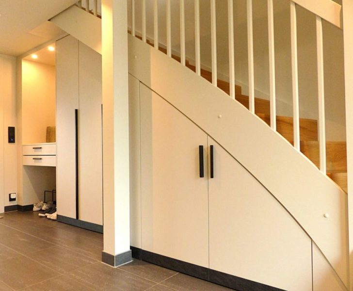 Ferdige møbler passer sjelden perfekt under en trapp. Høyden varierer, dybden er ulik og trappen har ofte vanger og stolper som stikker ut. En plassbygd løsning kan følge trappens form nøyaktig og gir derfor jevnere uttrykk og bedre utnyttelse av hver eneste centimeter.